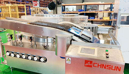 采用超聲波清洗及水氣交替沖洗、熱風(fēng)循環(huán)式高溫滅菌、多頭灌裝與封口等技術(shù)。整線聯(lián)動自動控制。操作簡單方便,實(shí)現(xiàn)了機(jī)電一體化。